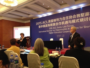 2015年4月18日至19日,2015年ACL美国领导力合作协会独墅湖年会暨中美高等教育合作机遇与模式研讨会在苏州金陵观园酒店举行。作为研究人员,美麒麟顾问应邀出席了本次年会,并参与了相关研讨活动。与会者来自苏州独墅湖科教创新区管委会职能机构、教美国ACL联盟、苏州各中外合办高校以及相关机构的研究人员和代表。本次年会暨研讨会为期一天半。