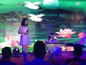 伴随各类节目的陆续出场,整个晚会是帅哥、美女、新年吉祥物、长裙、珠片、蕾丝、裤装、礼服裙、道具,复古,美轮美奂。整个演出不仅有“花颜雕琢”的古典美,而且有美如仙子的梦幻美。男生反串的旗袍秀,传统古典与创新今风相融合,配上“上海滩”的故事背景,更是技压全场。
