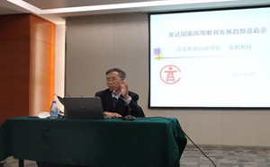 史朝从国际高等教育形势、各国高等教育走向以及校企合作等方面展开论述,运用多个实例深入分析跨国公司与中国高等教育界的合作状况,以及对教育的影响,并结合自身研究成果和经验,向参会人员分享了高校和跨国公司合作的启示与政策建议。讲座内容丰富,高屋建瓴,进一步开阔了现场教育工作者的国际化视野,使他们对发达国家高等教育有了更加全面和深入的了解,也引发了对今后教育工作的深度思考。
