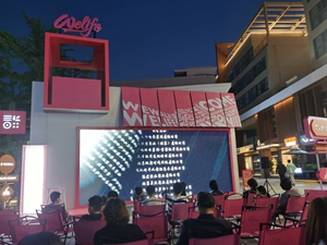 项目外围专题街区WeWalk,引入了多家来自上海、苏州等地的主理人商铺,这是该邻里中心项目的创新特色。其中一家咖啡面包品牌店偏向年轻化,整体风格呈现亮绿,展现了街区互惠共赢的时尚与活力满满的热闹。